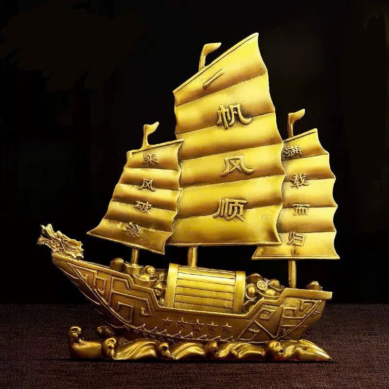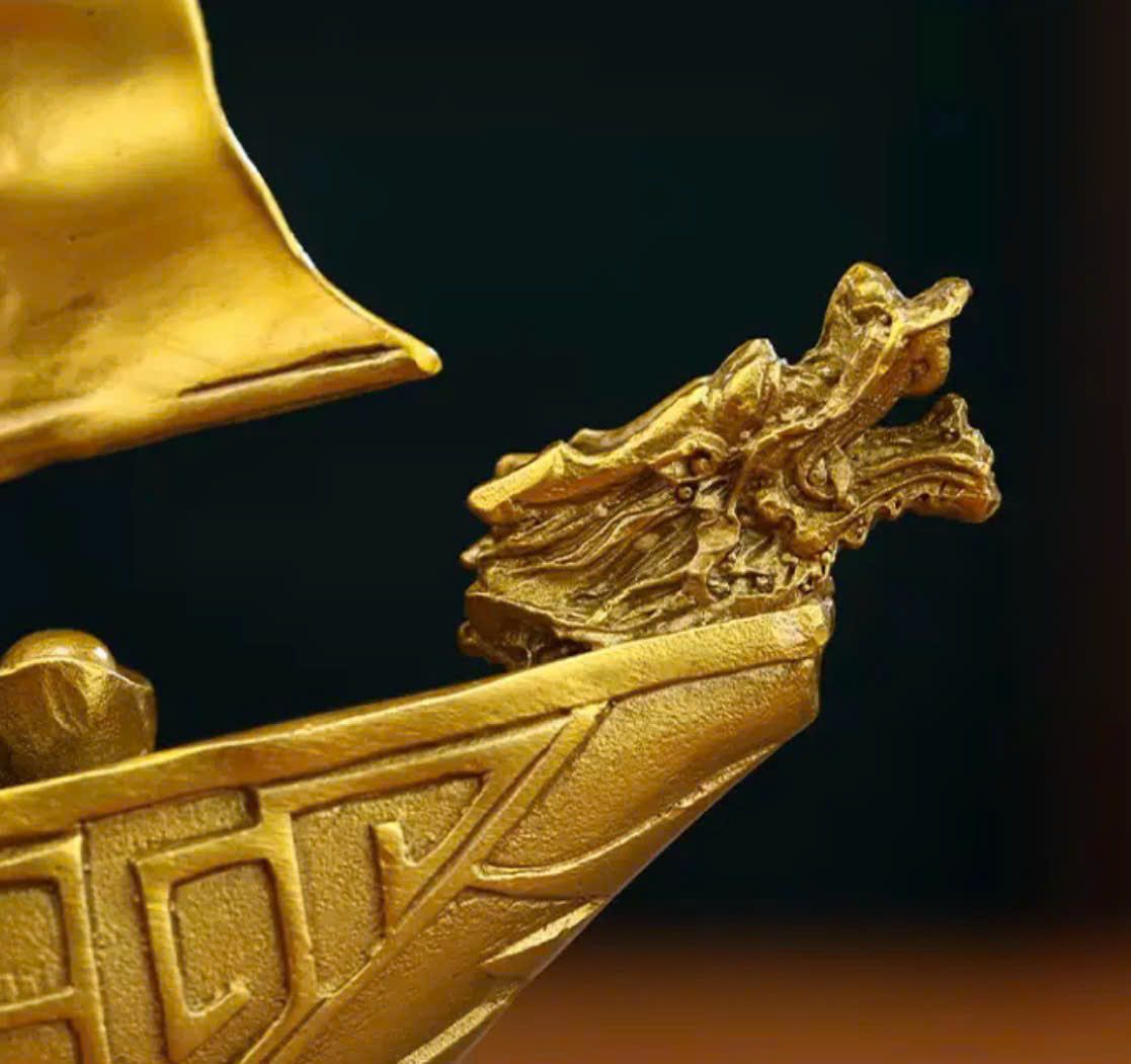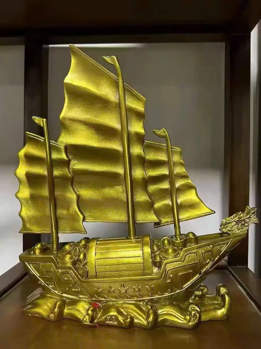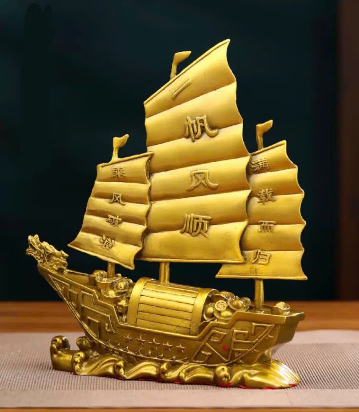 Thuyền buồm đầu rồng trang trí Chất liệu đồng Sử dụng đồ trưng bày Kt 23*8*28 nặng 1.8kg