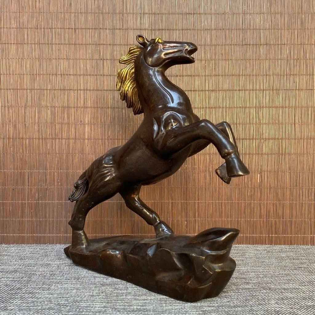 Tượng được chế tác từ đồng nguyên khối nặng 1.6 kg, tạo nên sự chắc chắn và sang trọng. Dáng Ngựa chồm/phi nước đại được tạo hình uy dũng, mạnh mẽ, từng đường nét đều được khắc tỉ mỉ. Với kích thước 23 cm, mẫu tượng này rất phù hợp để trưng bày trên bàn làm việc, tủ trang trí, phòng khách hoặc làm quà tặng cao cấp.