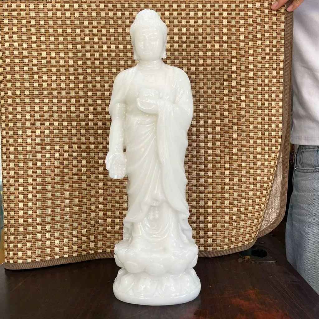 Tượng Phật Đứng Đá Cẩm Thạch Trắng – Bình An, Thanh Tịnh & Giá Trị Tâm Linh Cao