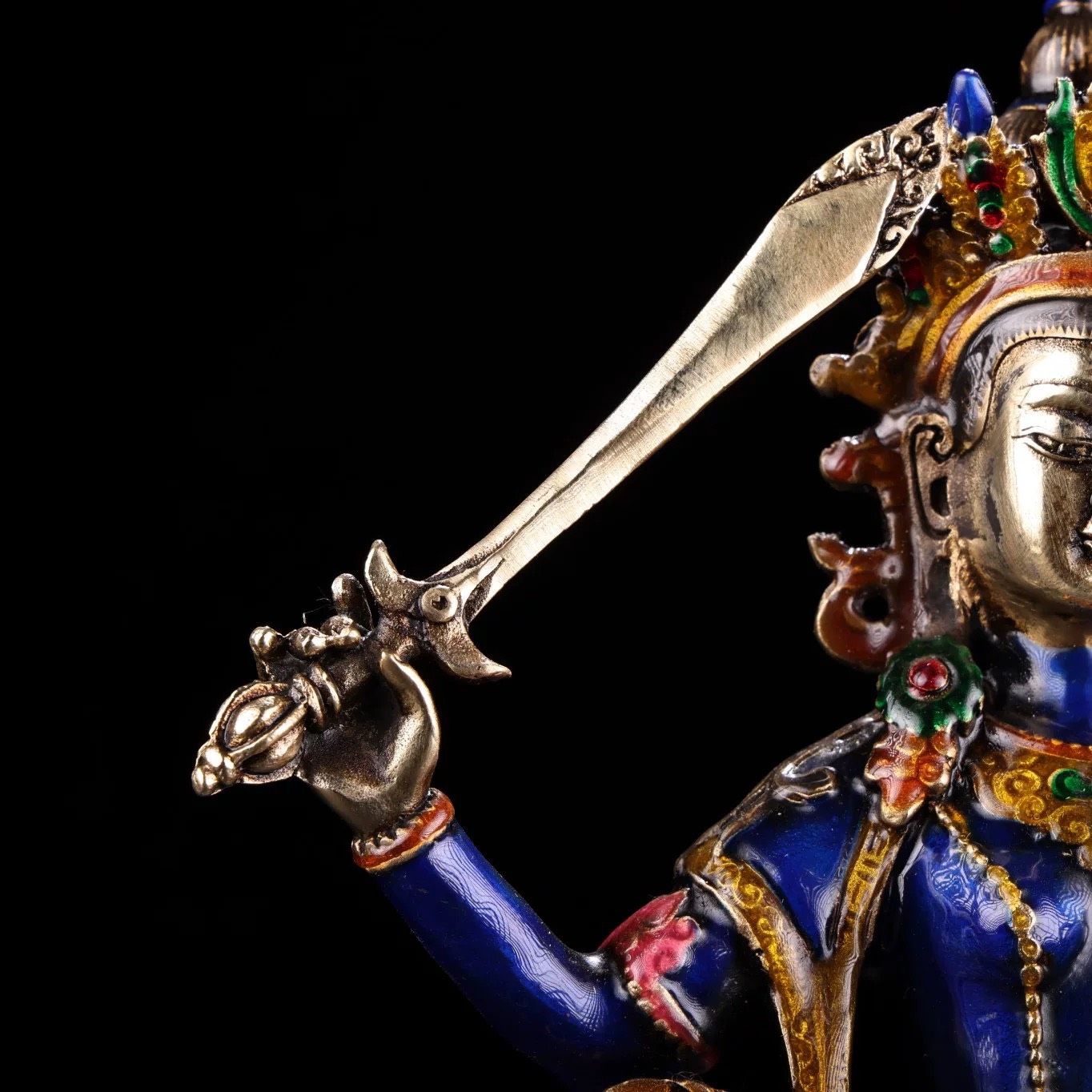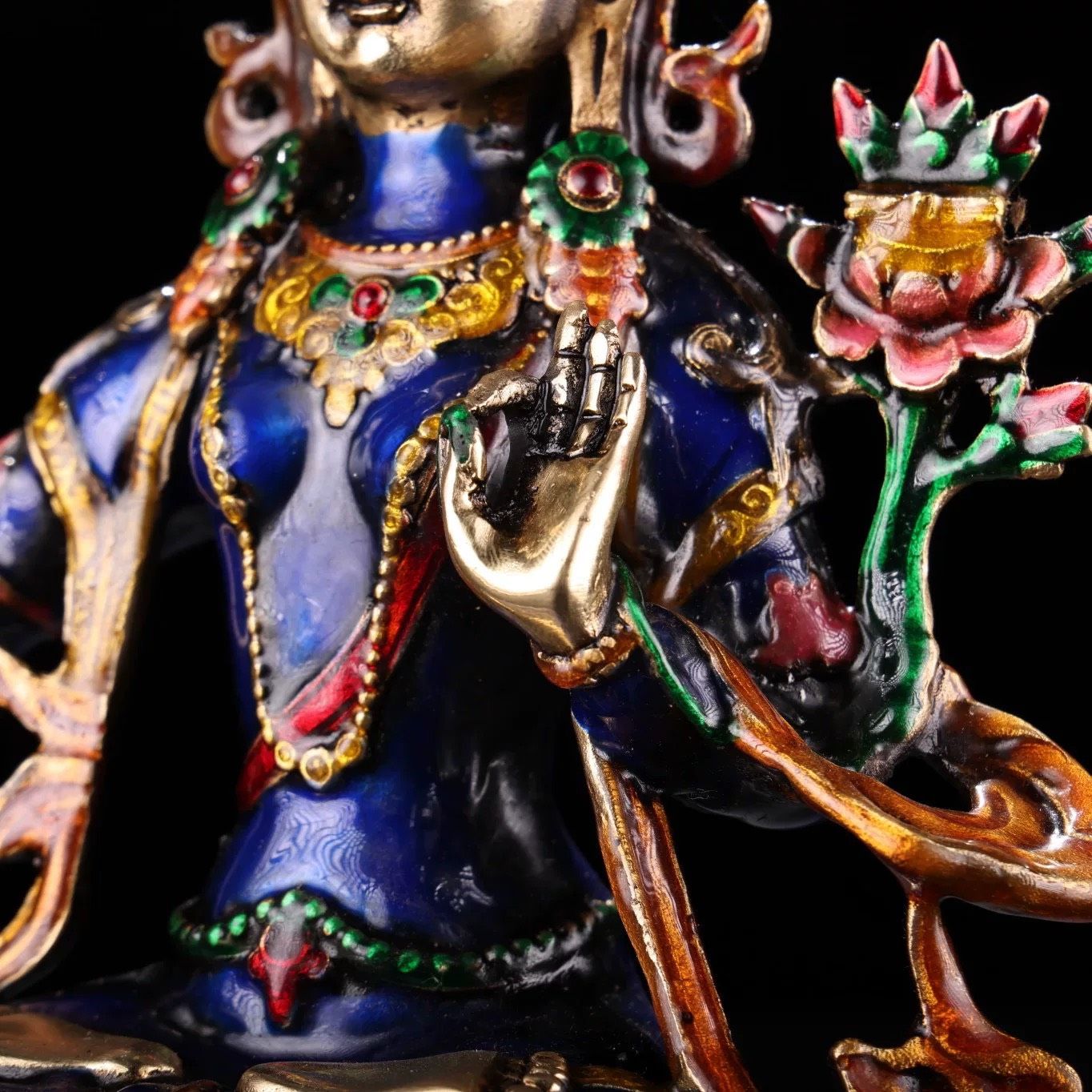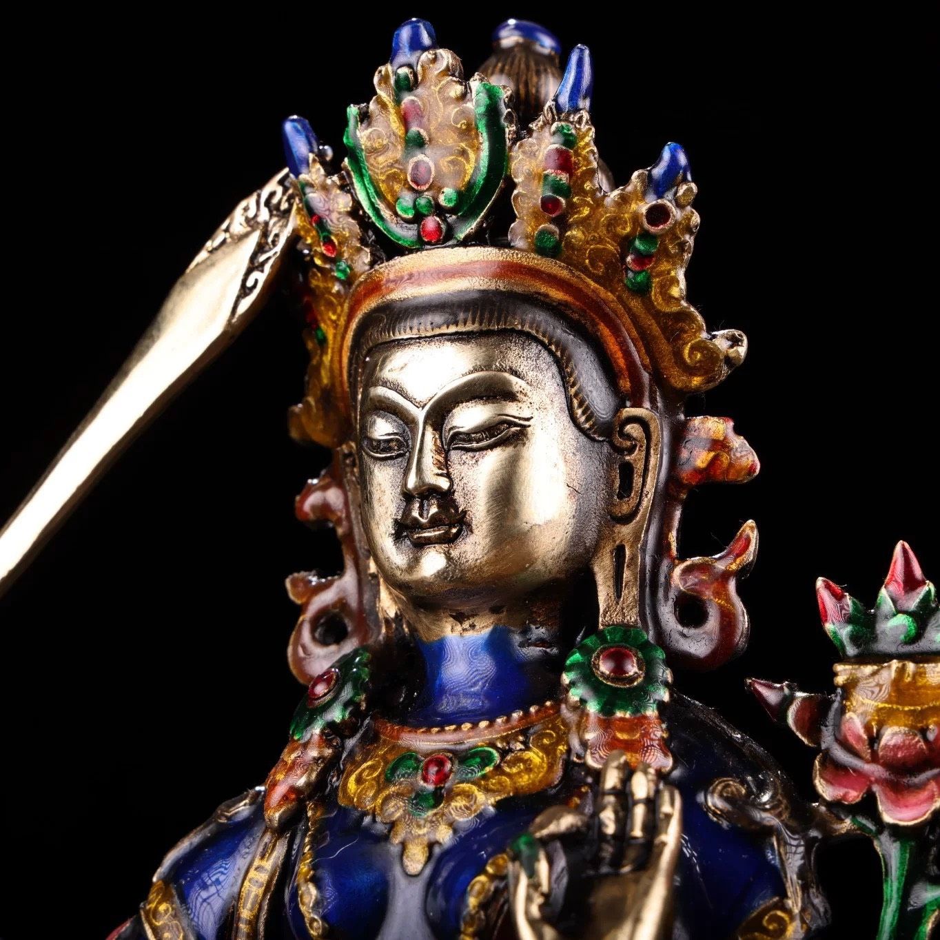Tượng Phật Văn Thù cầm kiếm Chất liệu đồng + cloisonne Sử dụng đồ trưng bày Kt 18*21 cm nặng 1206g