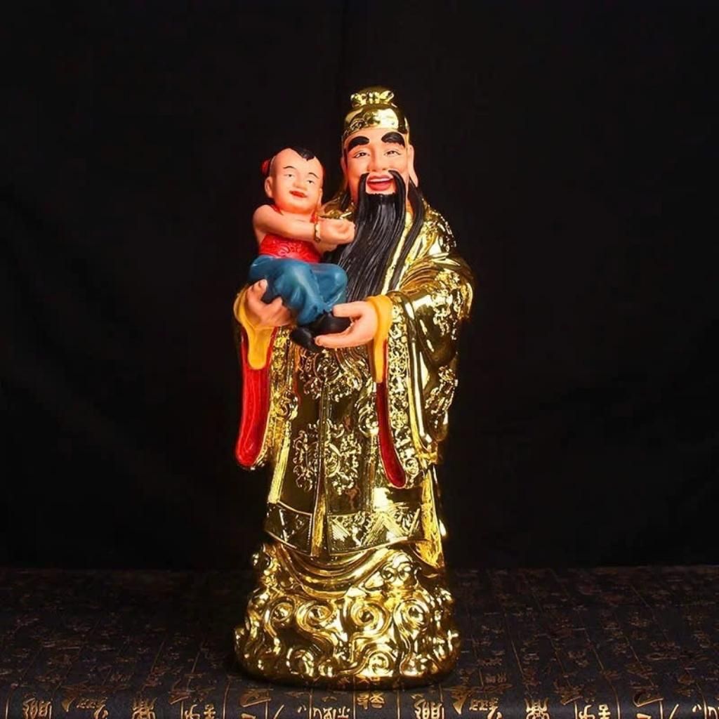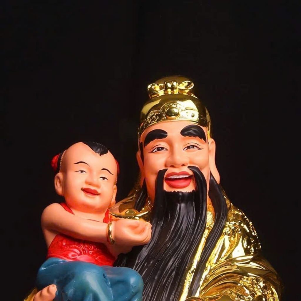 Ông Phúc bế tiểu đồng – biểu trưng cho con cháu sum vầy, gia đạo hạnh phúc