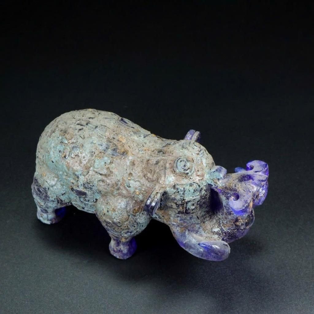 Chạm khắc phủ toàn thân, tạo hiệu ứng hai tông màu: • Tím sáng bóng ở bề mặt mịn • Tím/đen sẫm tại các đường khắc sâu, tạo cảm giác cổ kính – bí ẩn