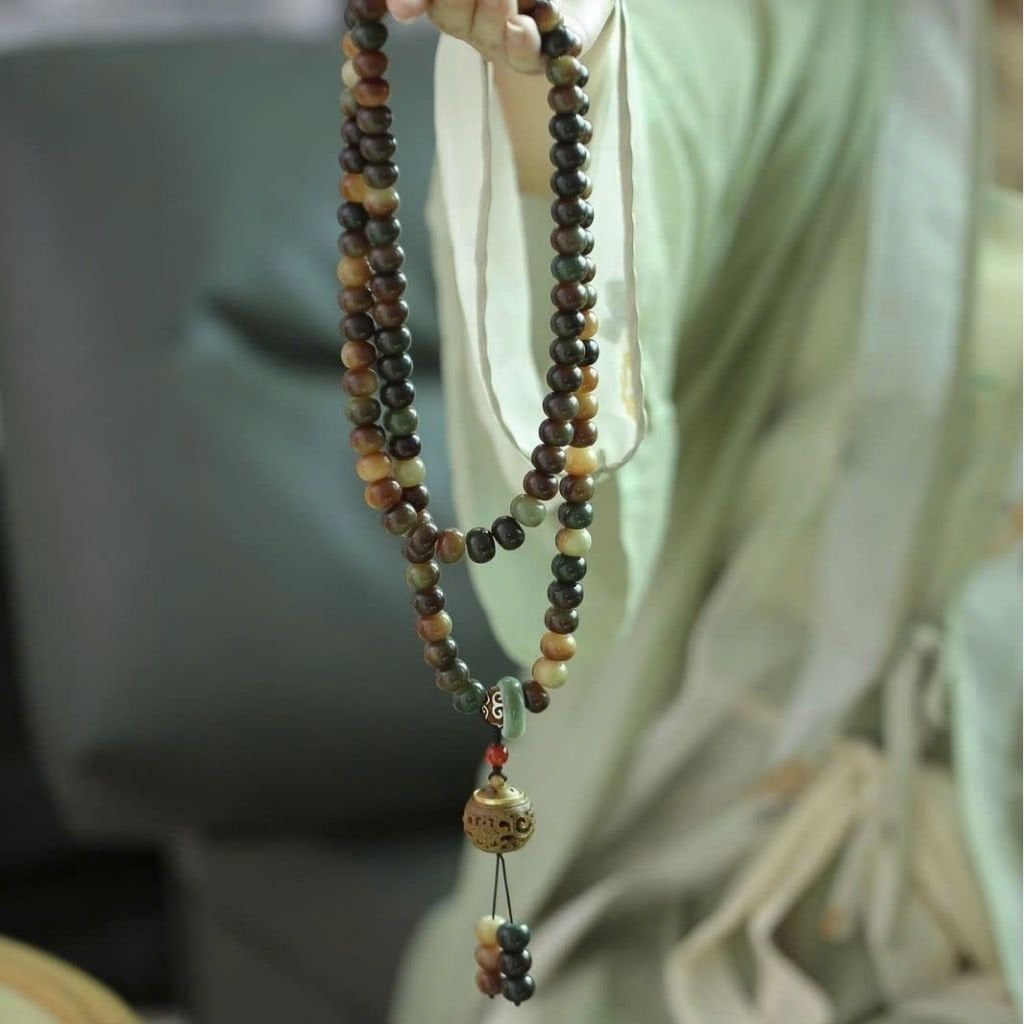 Vòng Chuỗi Niệm Phật Đa Sắc 108 Hạt – Đeo Cổ Hay Quấn Tay Đều Đẹp Bạn đang tìm một chiếc vòng chuỗi phong cách Phật giáo, vừa có giá trị tâm linh vừa dễ phối đồ? Chiếc vòng chuỗi niệm Phật đa sắc 108 hạt chính là lựa chọn lý tưởng cho những ai yêu mến thiền định, hướng nội và yêu phong cách hoài cổ, giản dị nhưng đầy ý nghĩa.