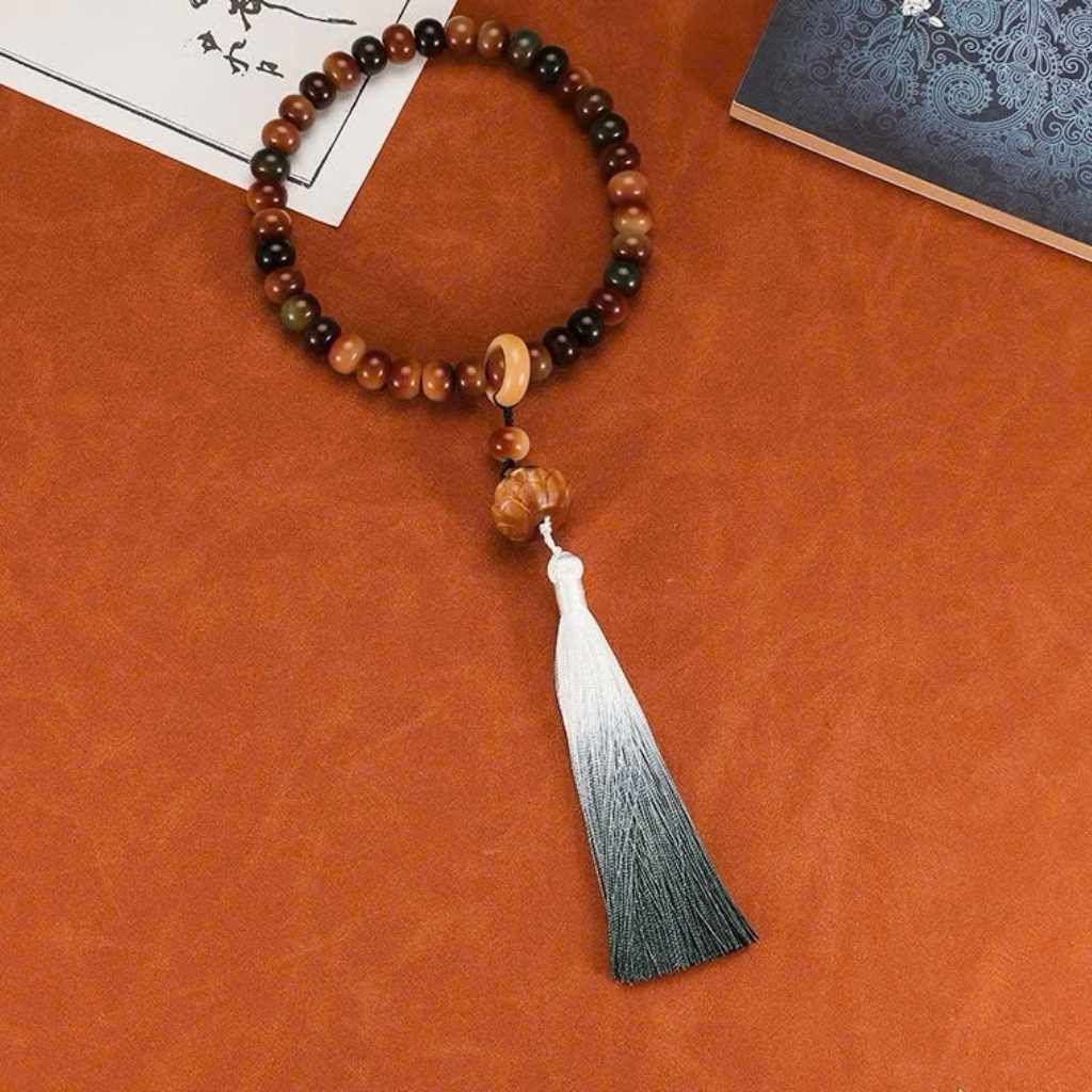 Vòng được xâu hoàn toàn thủ công, phối màu hoài cổ hài hòa. Mỗi hạt là một lời cầu an – thanh lọc tâm trí và xoa dịu tinh thần.