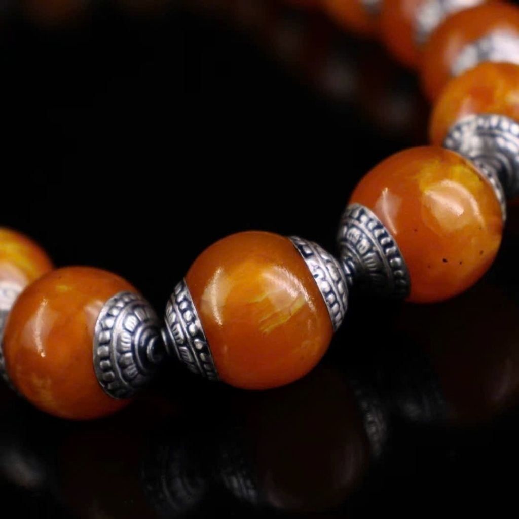 Ngọc hổ phách tượng trưng cho sức khỏe, sự bảo hộ và may mắn. Sắc cam ấm giúp lan tỏa năng lượng tích cực, kết hợp bạc 925 mang ý nghĩa thanh lọc – cân bằng – bình an.