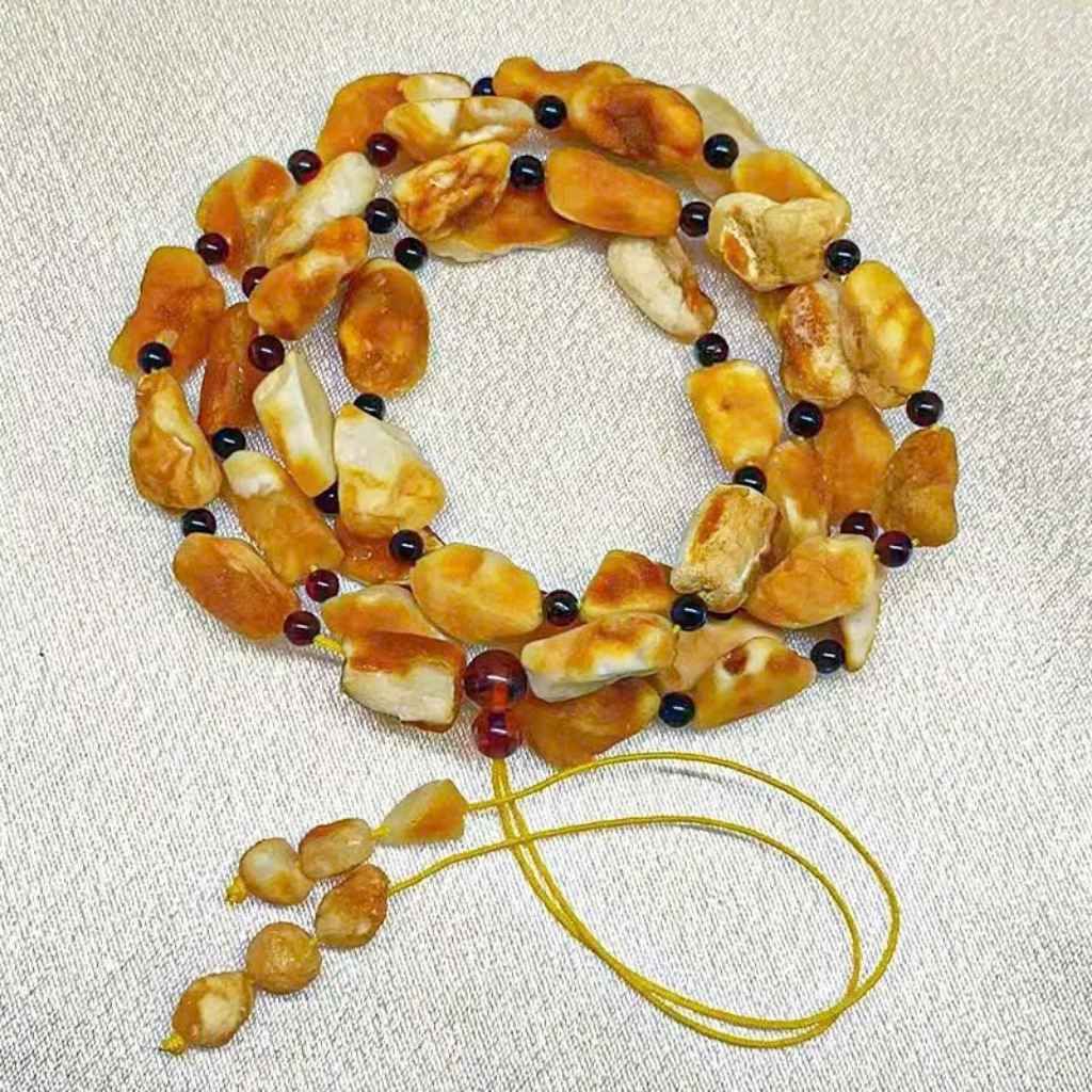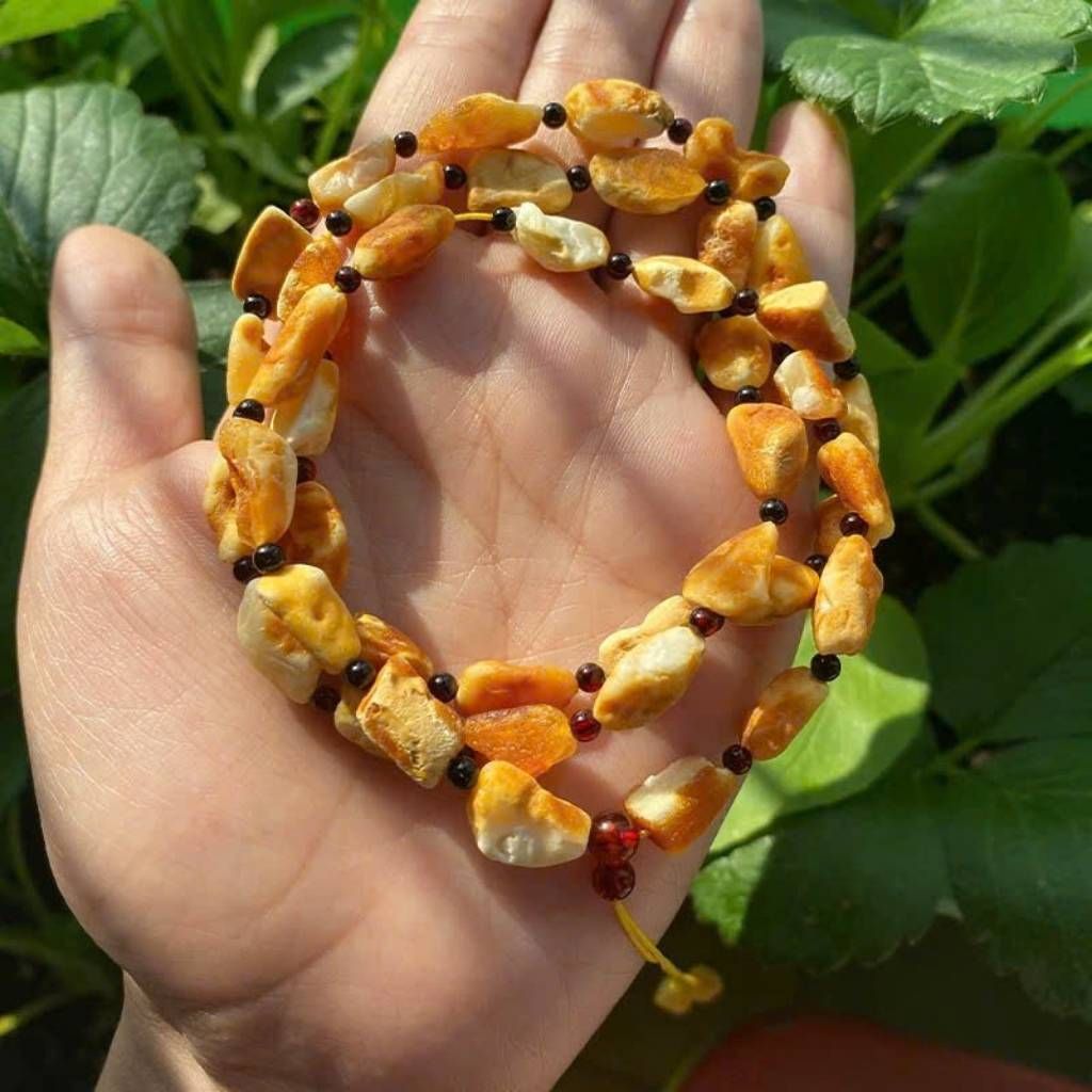 Vòng có tông màu vàng mật ong ấm áp xen kẽ trắng ngà tự nhiên, tạo nên sự cân bằng hài hòa, nổi bật trên cổ tay hay cổ.