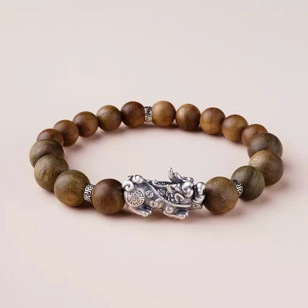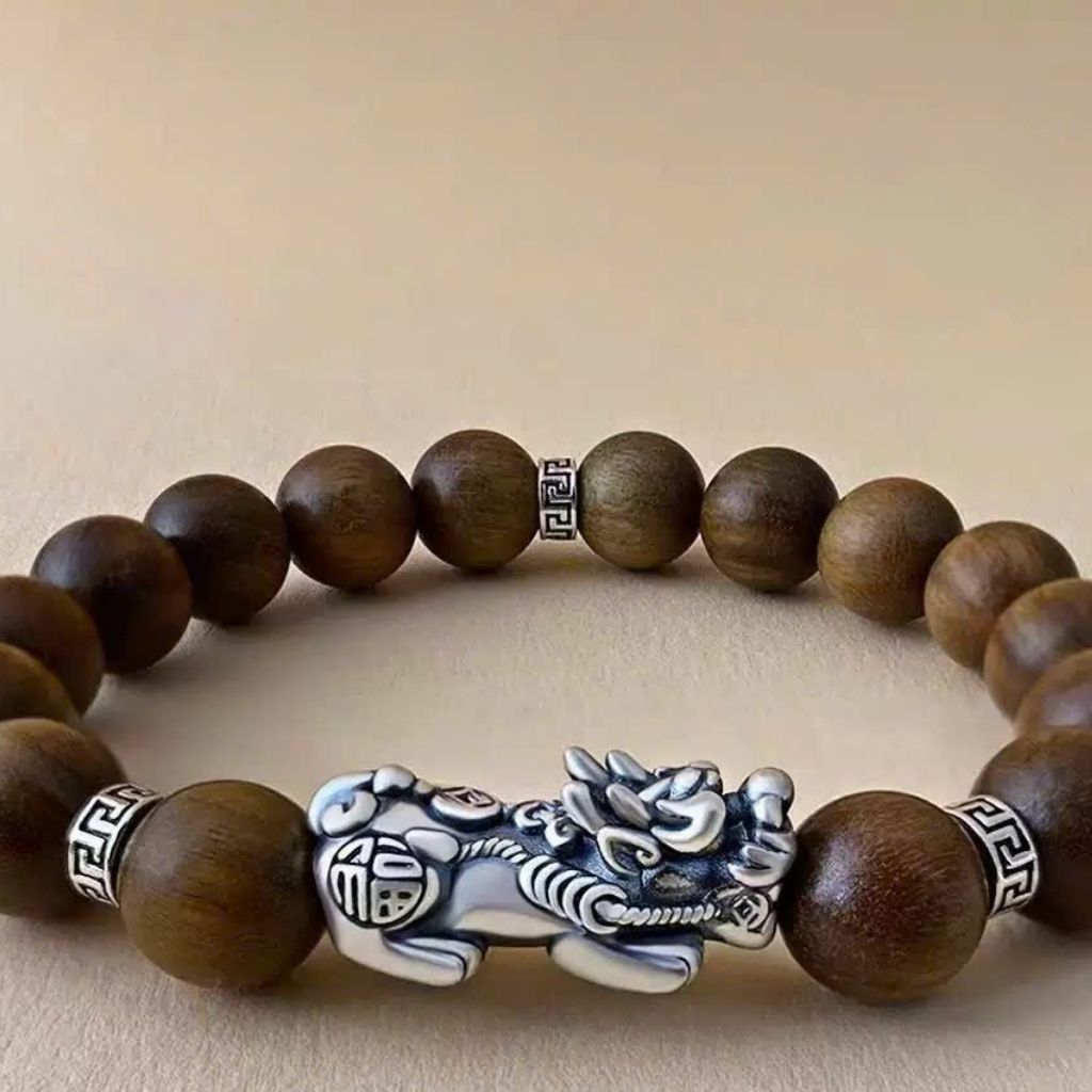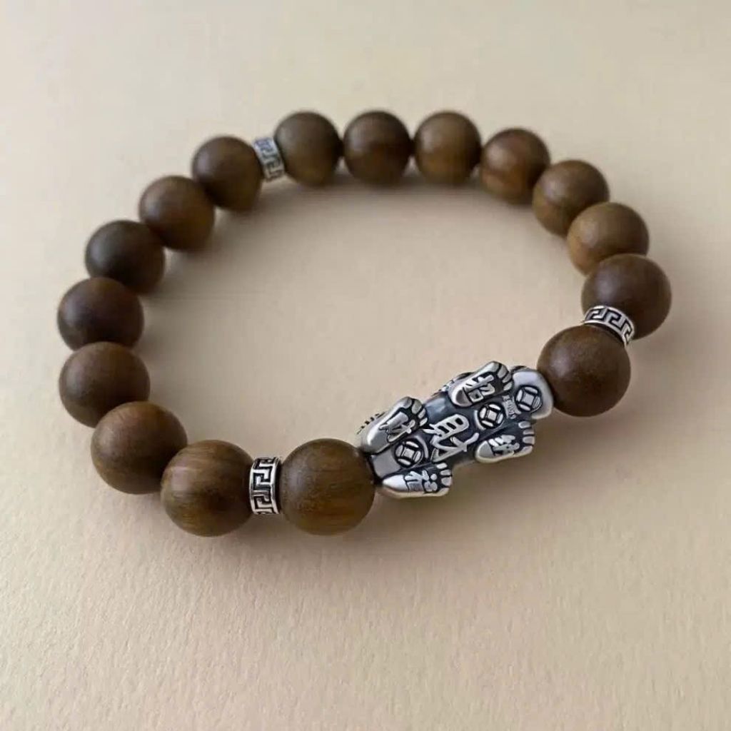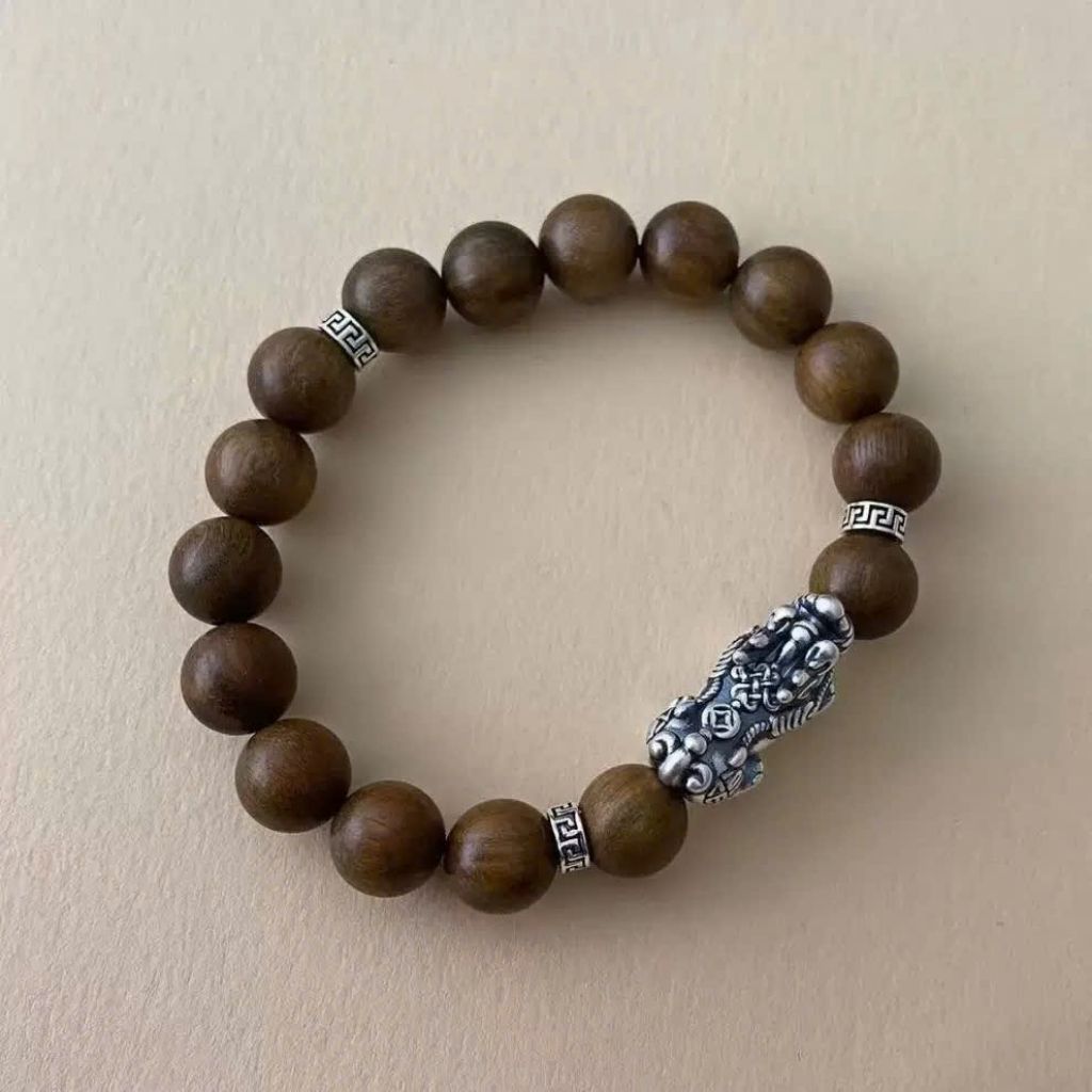Vòng Gỗ Đàn Hương Mix Tì Hưu Bạc Cao Cấp – Trang Sức Phong Thủy Thu Hút Tài Lộc & Bình An
