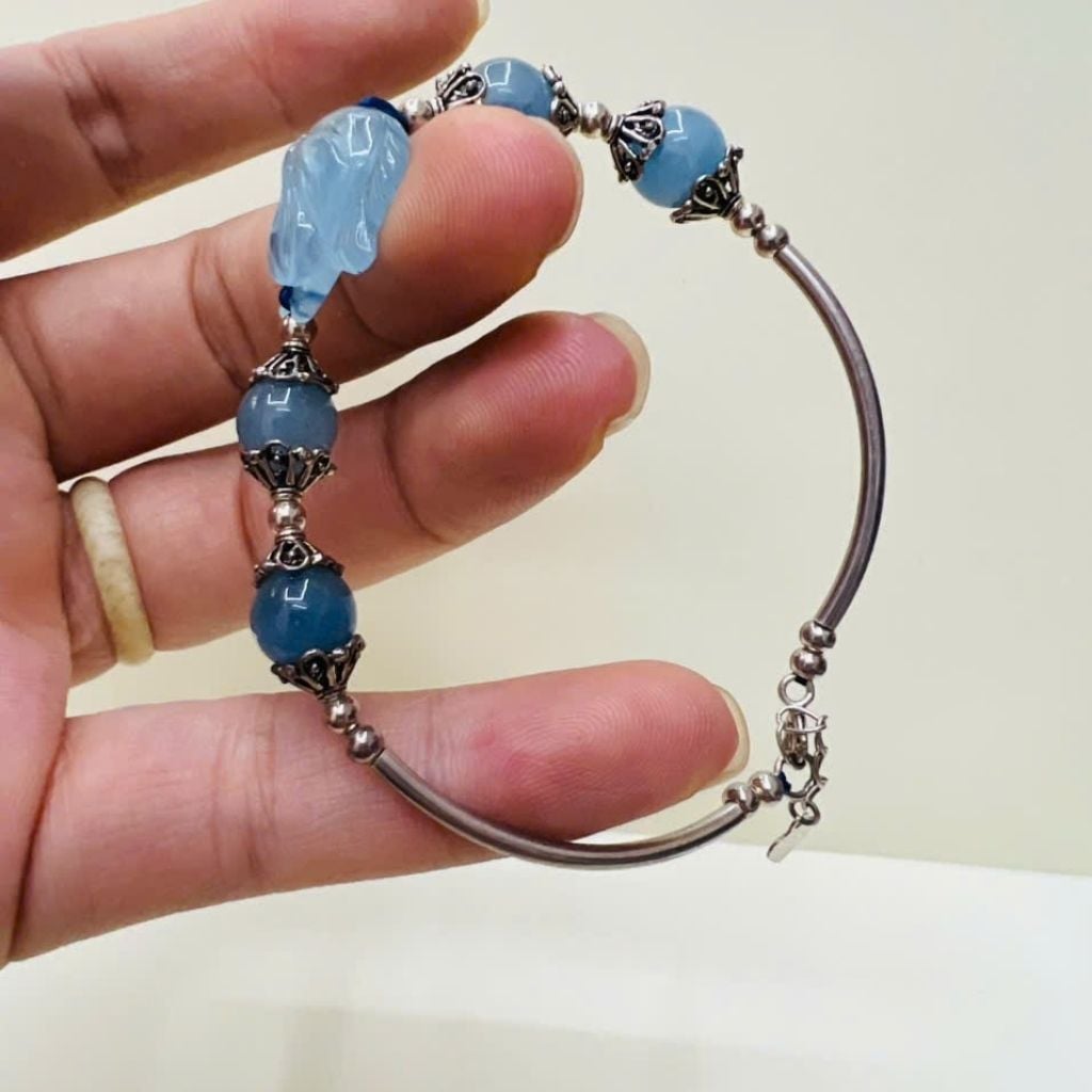 Vòng Tay Bạc Mix Ngọc Hồ Ly Xanh Hải Lam – Trang Sức Phong Thủy Tình Duyên Thanh Lịch