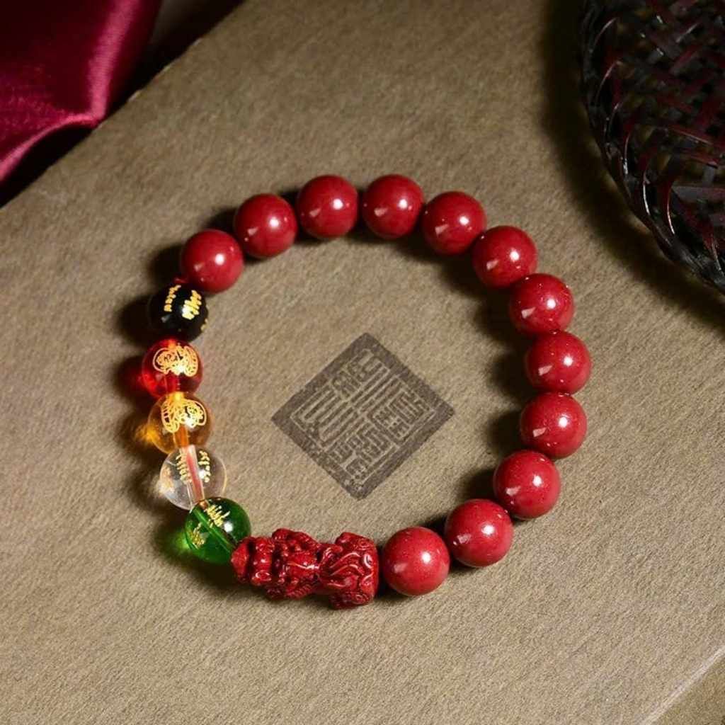 Chiếc vòng là sự kết hợp hài hòa giữa Chu sa đỏ thắm và các linh vật phong thủy quyền năng, tạo nên một món trang sức vừa đẹp mắt vừa mang giá trị tinh thần sâu sắc. Các hạt chu sa được chọn lọc kỹ, lên màu đỏ rực tự nhiên, tạo cảm giác ấm áp và sang trọng khi đeo trên tay.