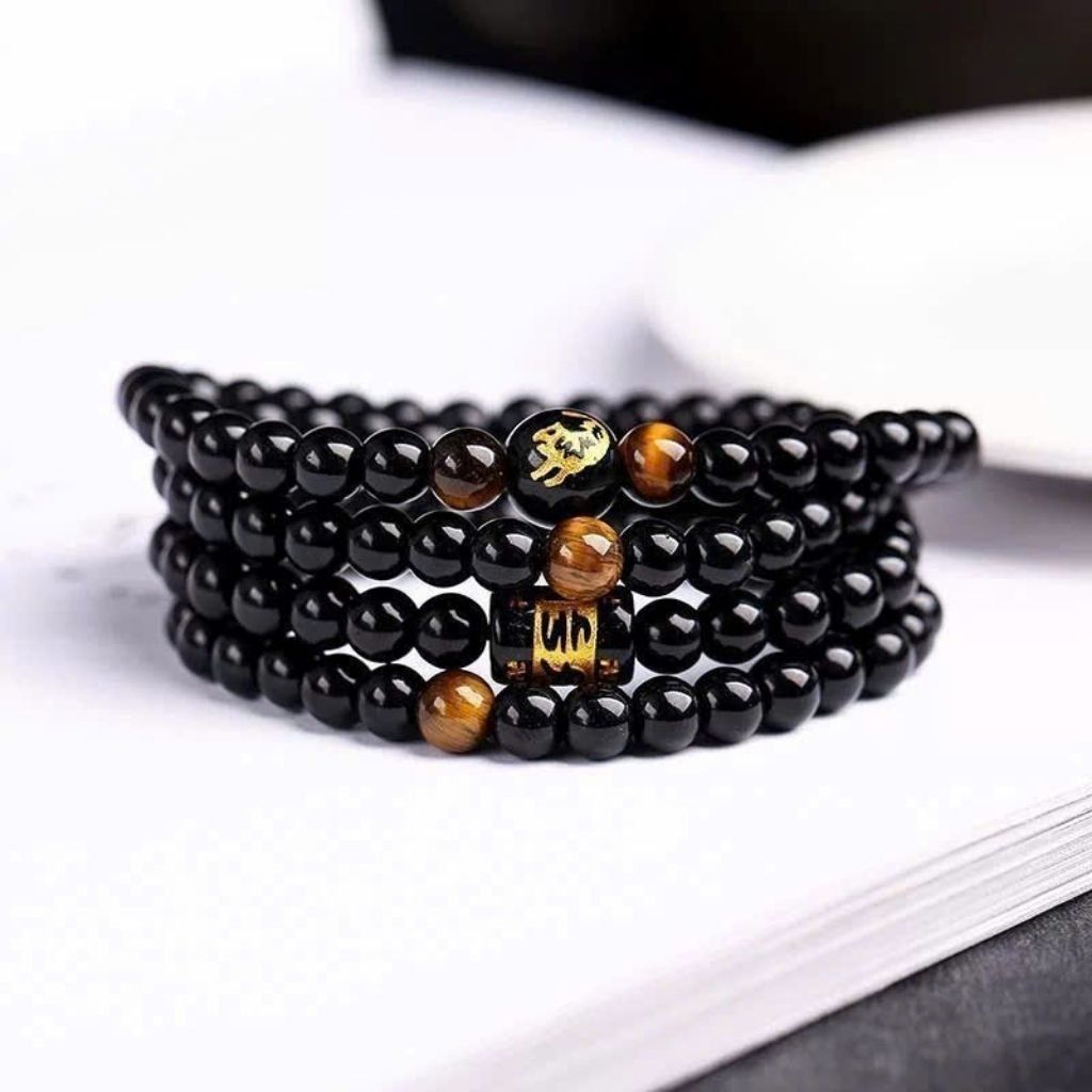 Vòng Tay Đá Mắt Hổ Đen 108 Hạt Khắc 12 Con Giáp – Phong Thủy Hộ Thân, May Mắn