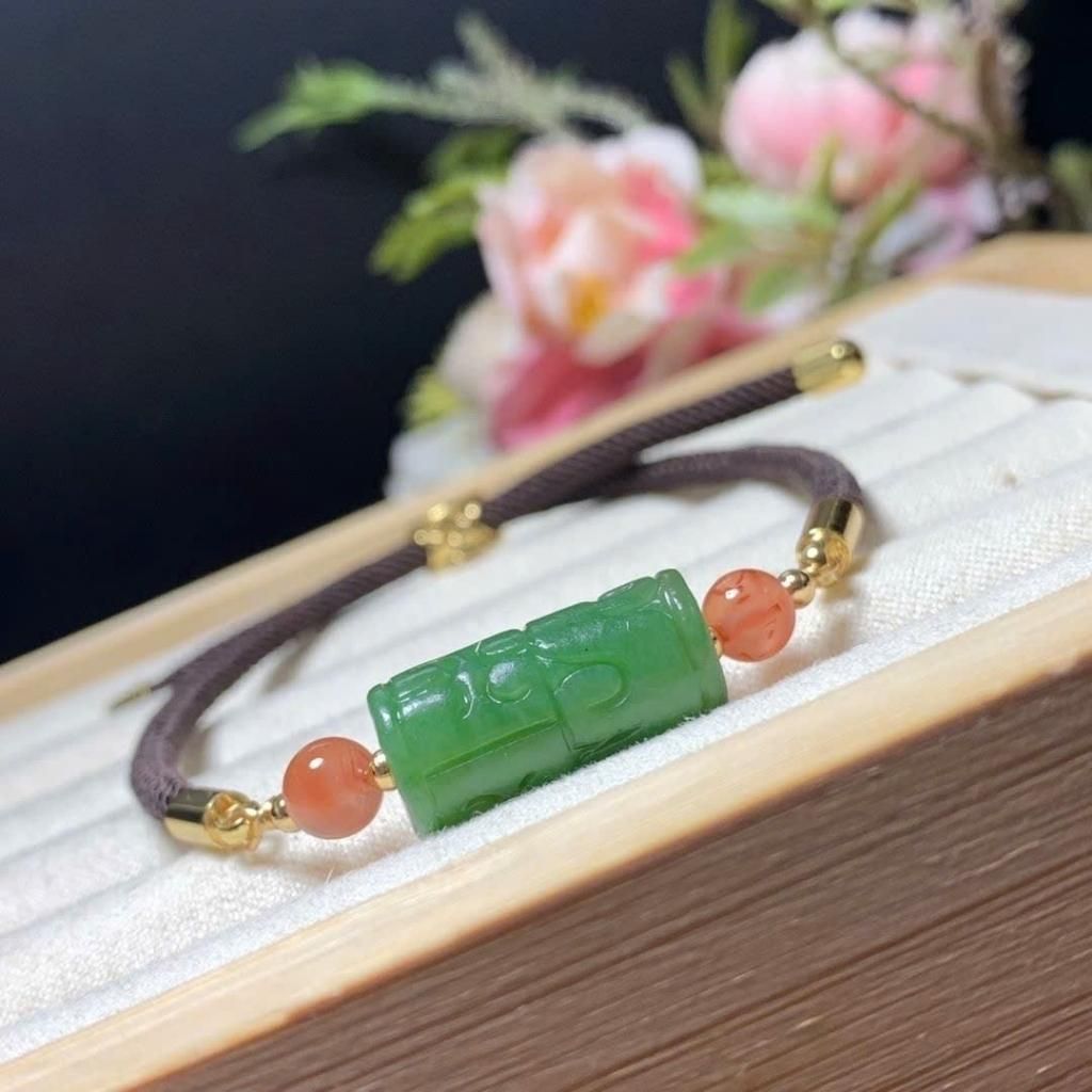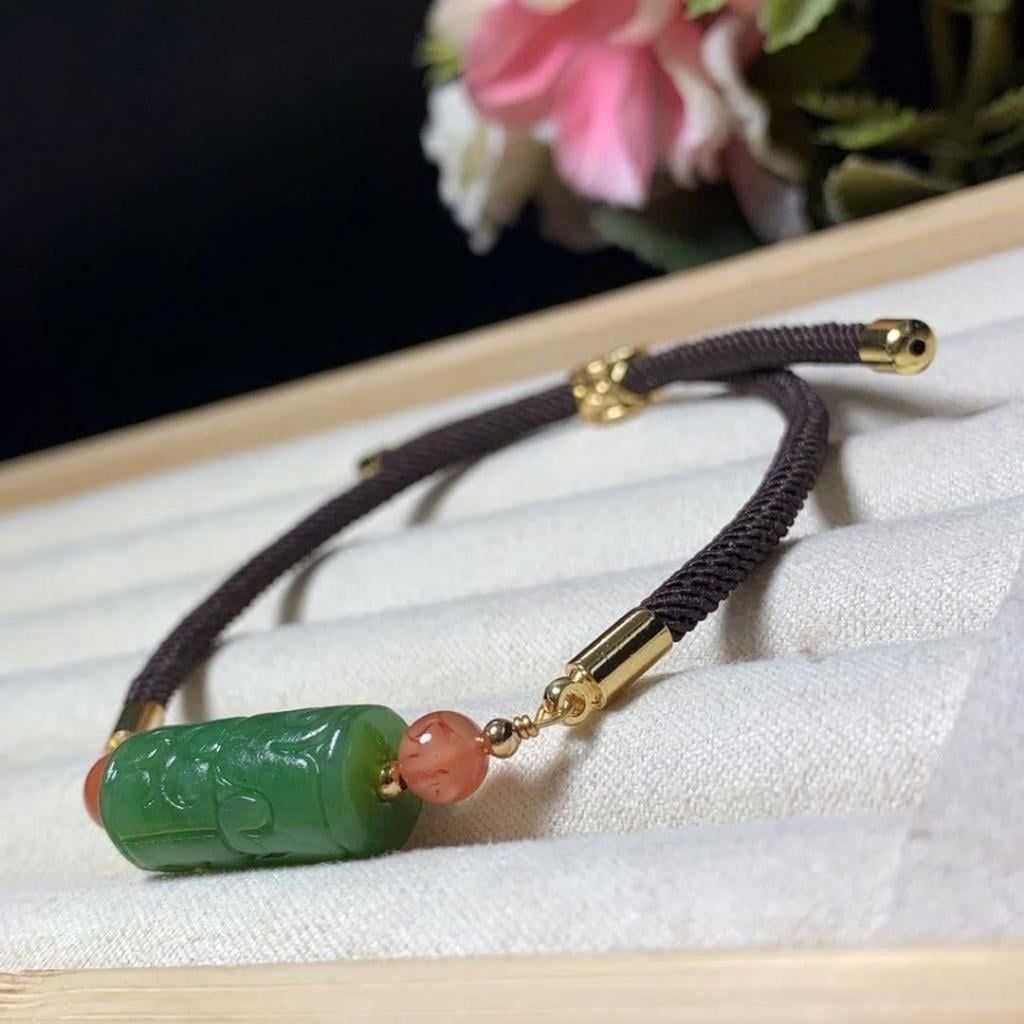 • Ứng dụng: Phù hợp đeo hằng ngày, đi làm, đi chơi, hoặc làm quà tặng phong thủy ý nghĩa. • Ý nghĩa: Ngọc bích tượng trưng cho bình an, tài lộc và sức khỏe; đá đỏ biểu trưng cho năng lượng tích cực và may mắn. • Tính hữu dụng: Dễ điều chỉnh kích thước, phù hợp cho cả nam và nữ, không gây kích ứng da.