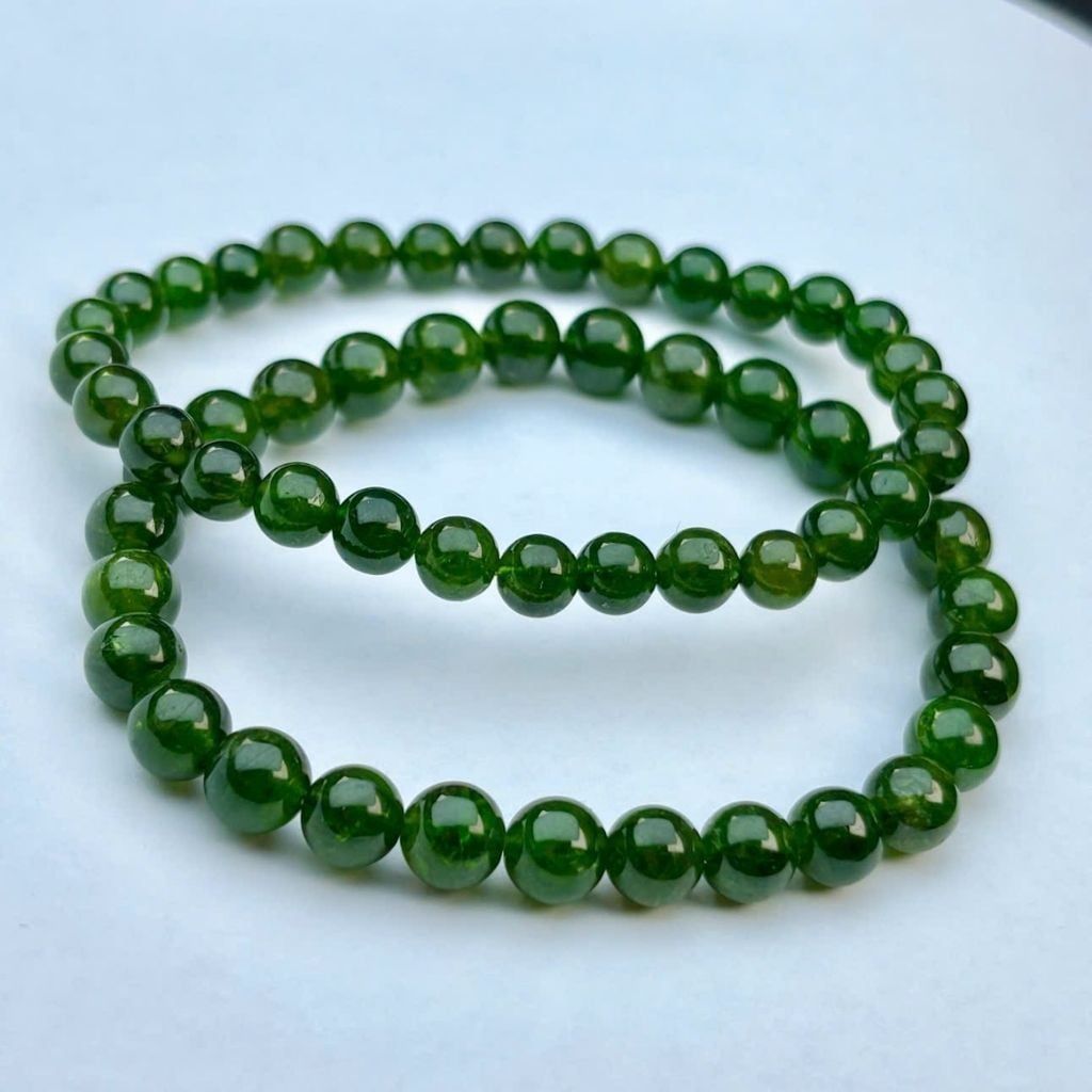 Những viên ngọc được chọn lọc kỹ càng, có độ bóng mịn tự nhiên. Càng đeo lâu, ngọc càng “lên nước”, bề mặt sáng hơn và màu sắc thêm phần sâu lắng – nét đặc trưng được nhiều người yêu thích ở ngọc bích tự nhiên.