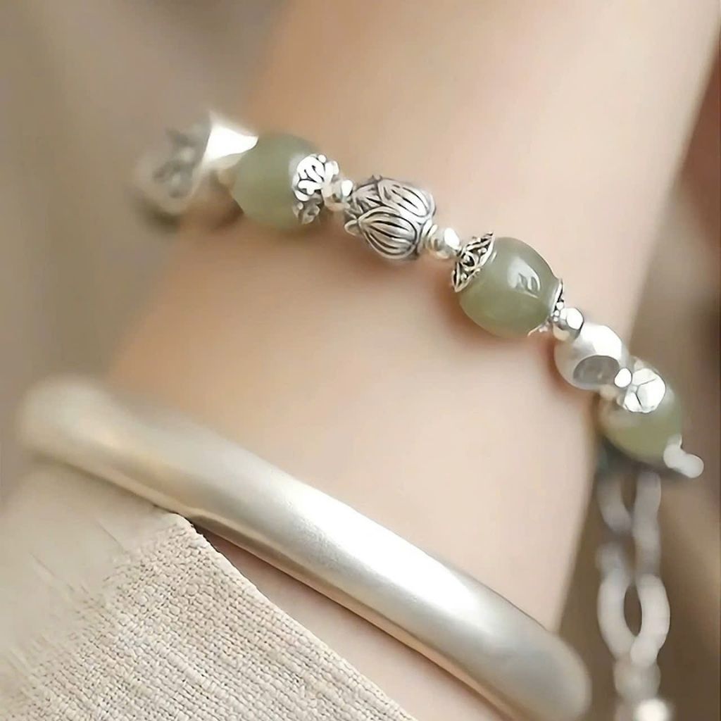 Vòng tay ngọc bọc bạc 925 được chế tác tỉ mỉ, từng chi tiết bạc đều mang hơi thở thủ công tinh xảo. Gam ngọc xanh dịu kết hợp ánh bạc phản chiếu ánh sáng nhẹ nhàng, phù hợp với nhiều độ tuổi và phong cách thời trang khác nhau.