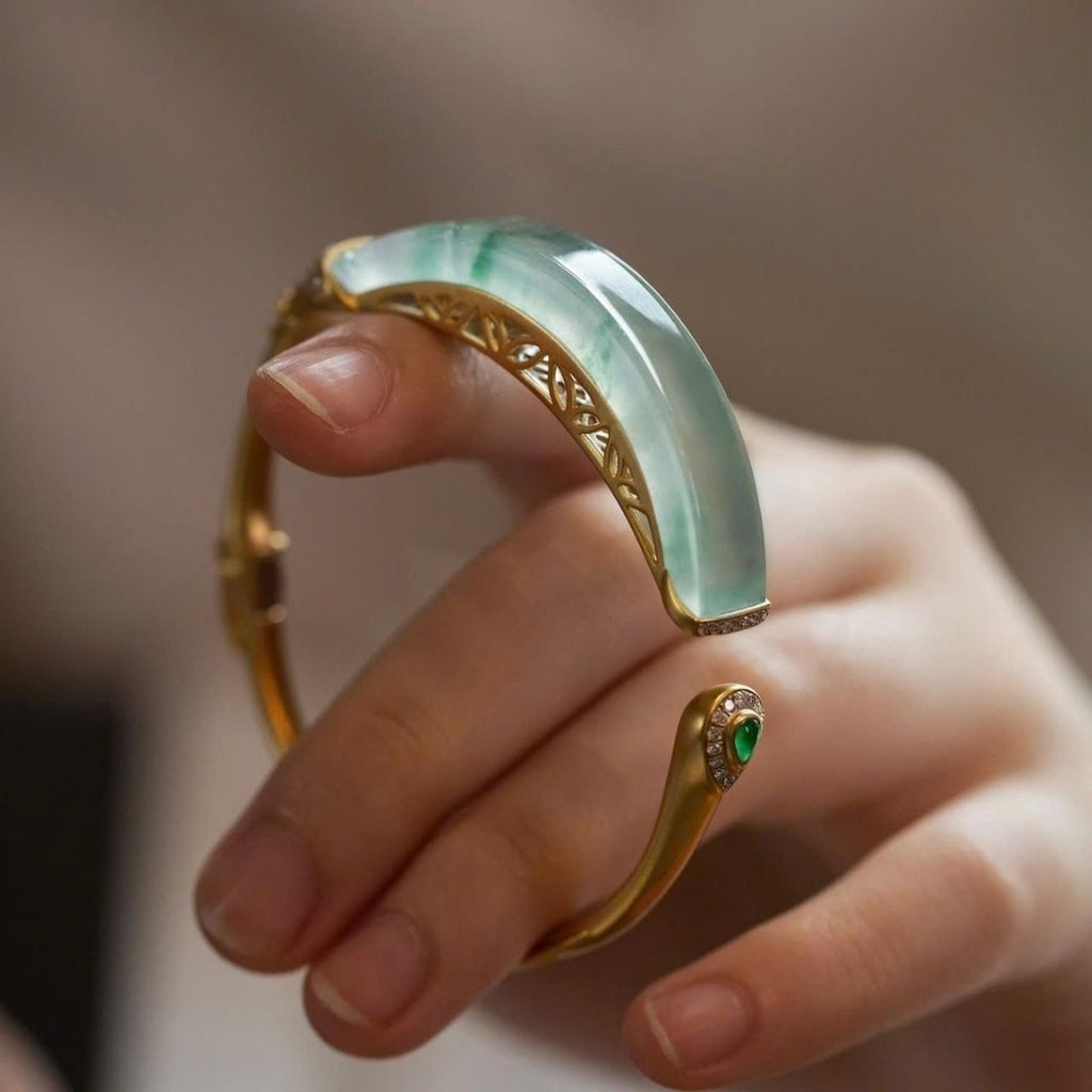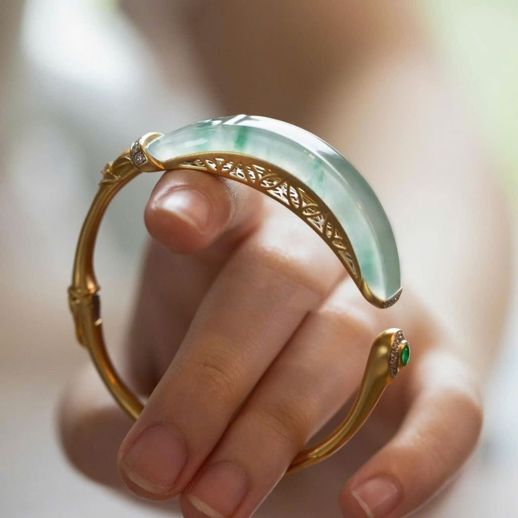 Vòng Tay Ngọc Phỉ Thúy Bọc Vàng Chạm Trúc – Sang Trọng, Tinh Tế Và Mang Ý Nghĩa May Mắn