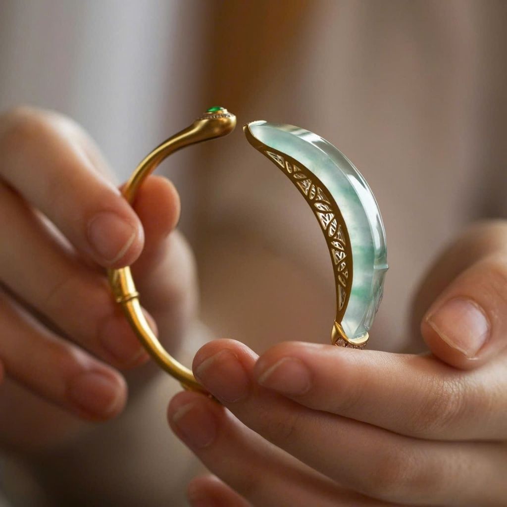 Khẳng định đẳng cấp: Sự kết hợp giữa ngọc thiên nhiên và vàng chạm khắc tinh tế.