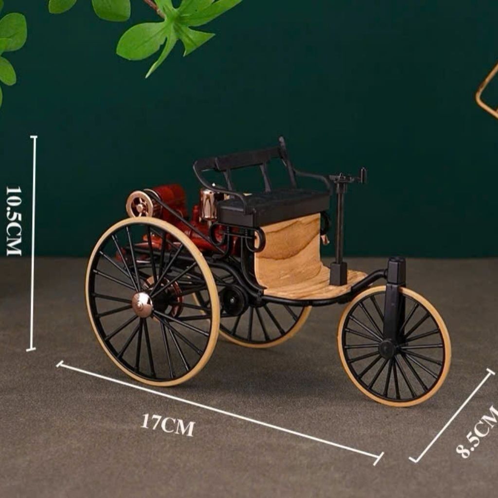Mô hình được chế tác tinh xảo, từng chi tiết bánh xe, tay lái, khung sườn đều mang nét chân thực và nghệ thuật. Phù hợp để bày phòng khách, bàn làm việc hoặc quán cà phê theo phong cách cổ điển.
